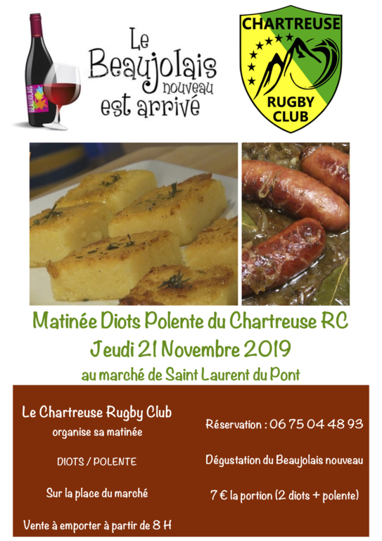 Une vente de diots polente est organisée à cette occasion le Jeudi 21 Novembre à partir de 8h.